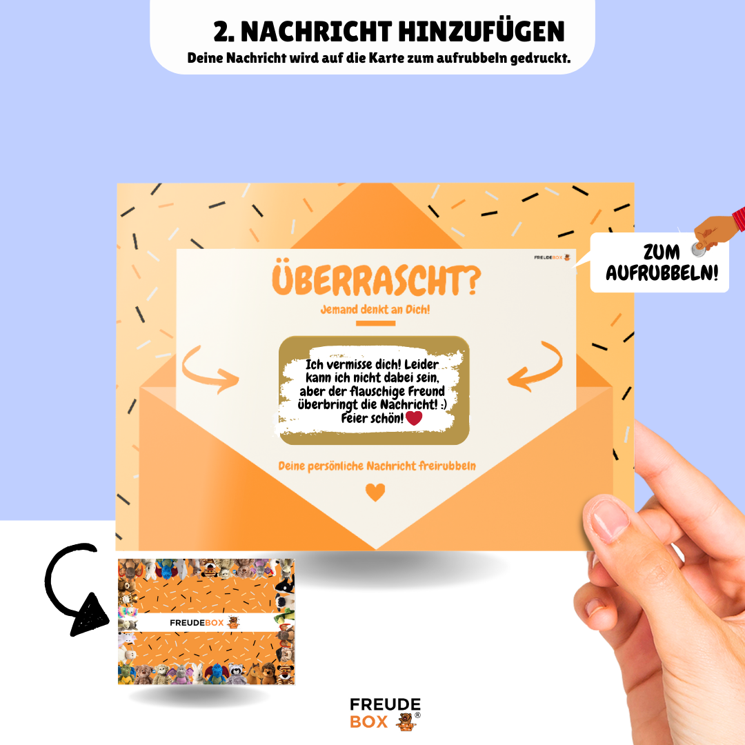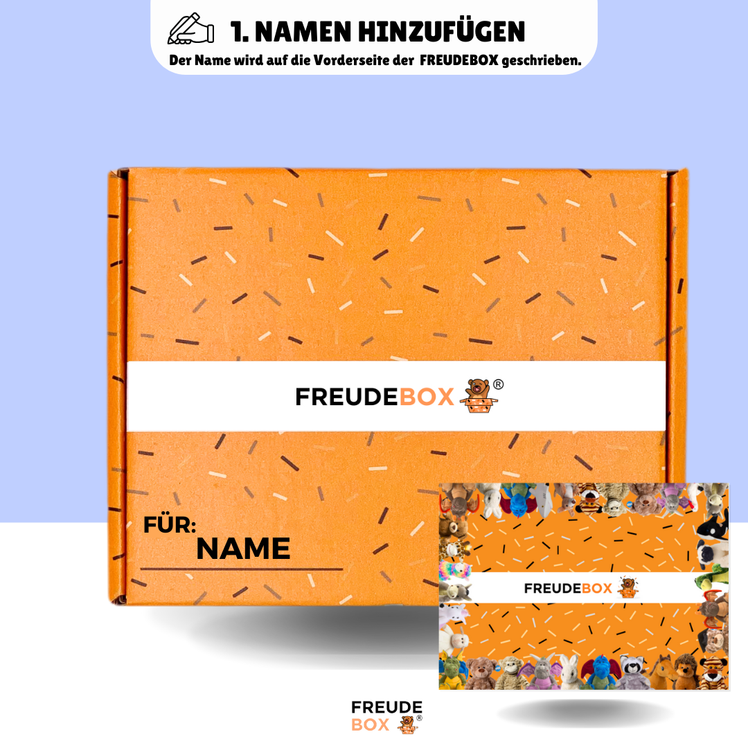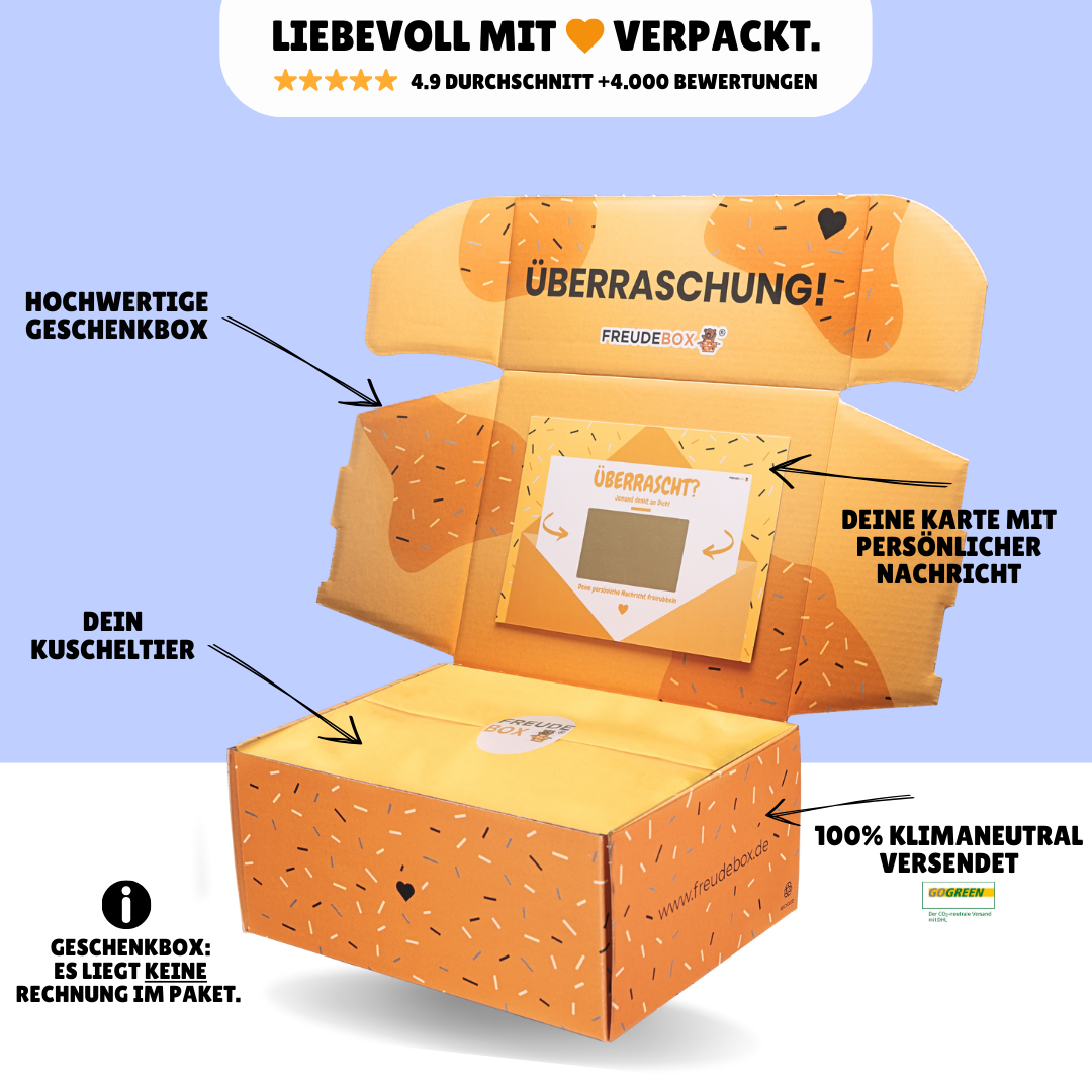 Wenn du noch mehr Geschenkideen suchst, findest du bei FREUDEBOX viele weitere personalisierte Geschenkboxen für unterschiedliche Anlässe. Auch unsere Auswahl an Kuscheltieren bietet zahlreiche weitere Charaktere und Geschenkideen, die sich ideal als kleine Überraschung eignen.