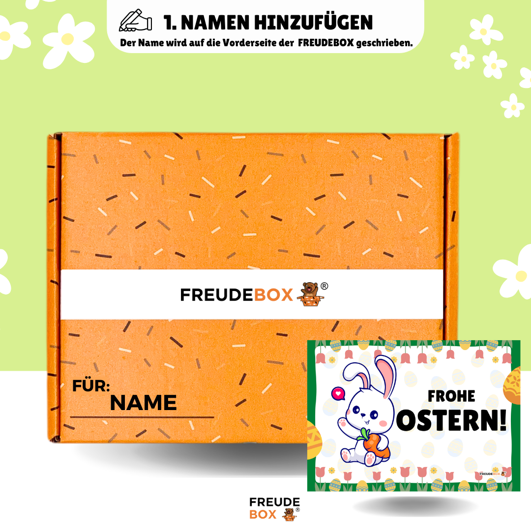 Am 05.04.2026 ist Ostern und du möchtest deinem liebsten Menschen eine besondere Freude machen? Dann ist unsere limitierte "Osterhase" FREUDEBOX® genau das Richtige für dich!