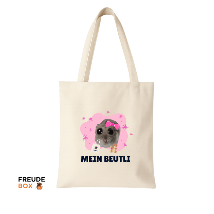 Die bedruckte Stofftasche mit süßem Motiv ist das perfekte Extra zu deiner Geschenkbox und später ein praktischer Begleiter für Einkauf, Schule oder Alltag.