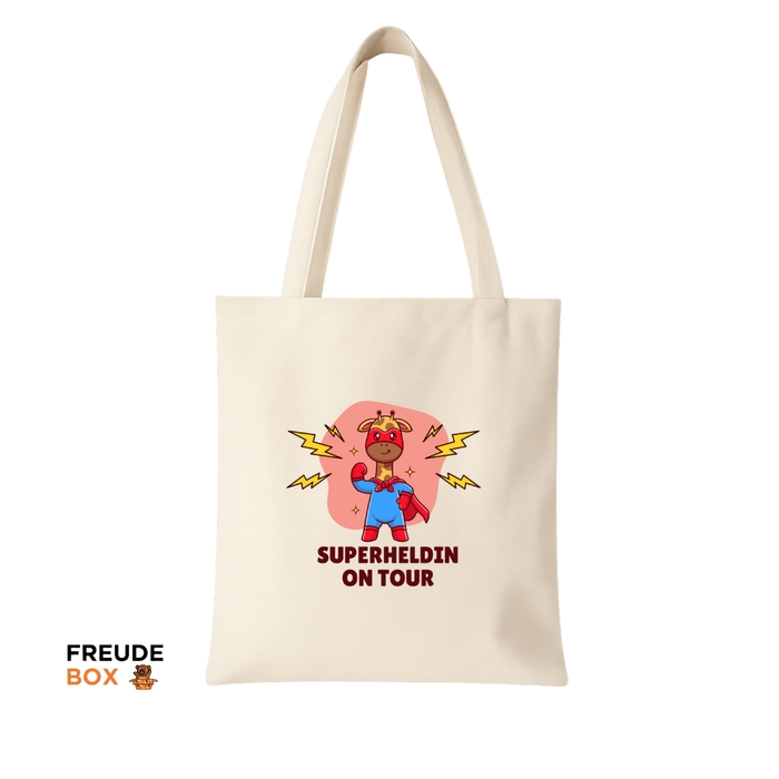 Jutebeutel – Giraffe „Superheldin on Tour“