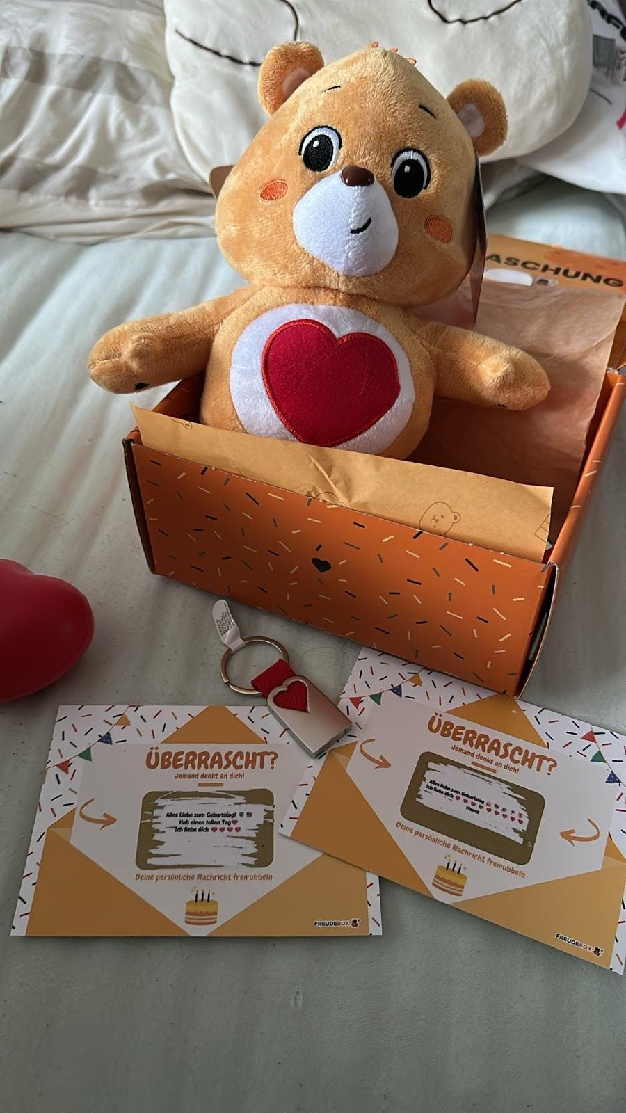 Ich habe eine Freudebox für meinen Freund bestellt und bin absolut begeistert! 💝 Der Teddy ist super süß, die Verpackung liebevoll gestaltet und alles kam schnell und sicher an. Man merkt richtig, wie viel Herz in dem kleinen Unternehmen steckt. Eine wunderschöne Idee zum Verschenken – ich kann es nur weiterempfehlen! 🧸✨